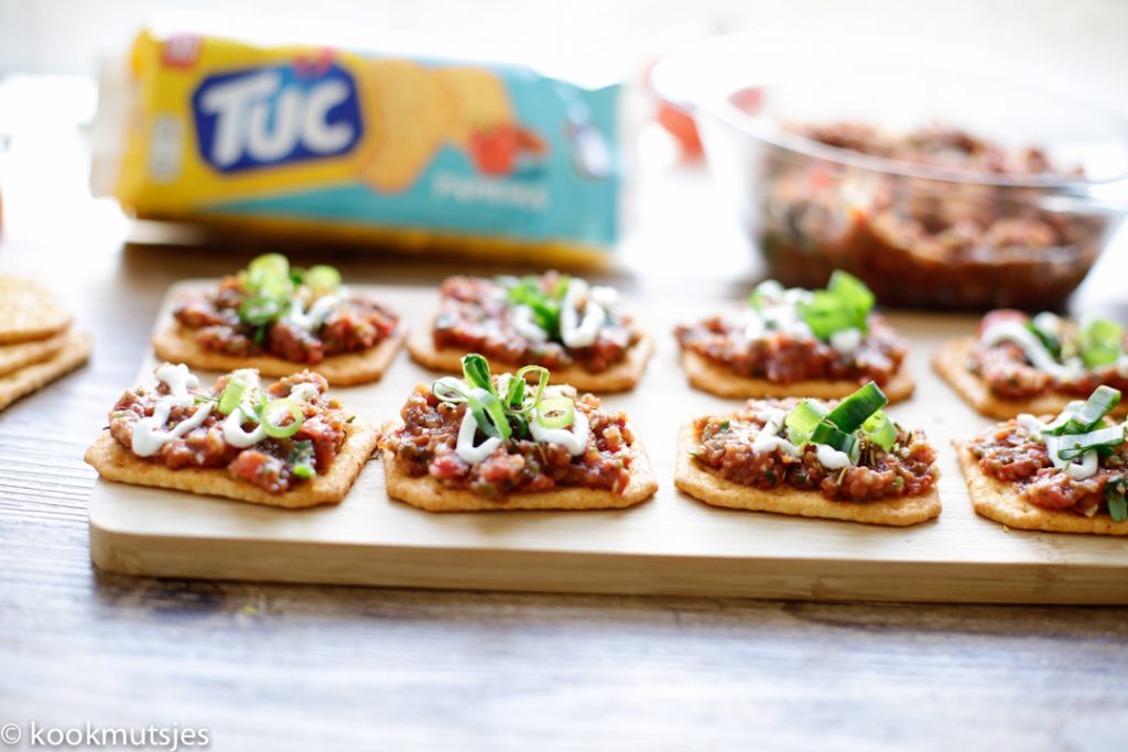 TUC biscuits, wie kent ze niet? Zonder topping zijn ze al heerlijk, maar ik ga een poging wagen om er door middel van een topping het lekkerste nr.1 snackje van Nederland van te maken. Heerlijk als borrelhapje of gewoon lekker voor jezelf voor de buis. No worries, het recept voor de toppings is erg simpel en eenvoudig te maken. Dus de perfecte snack voor een borrel, onverwachts bezoek of een late night craving.