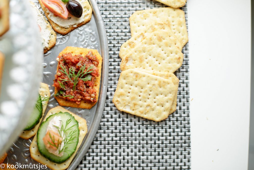 Natuurlijk kun je de toppings en TUC ook apart serveren zodat iedereen zelf combi’s kan maken of de TUC kan dippen in de schaaltjes. Door het apart serveren voorkom je ook meteen dat de TUC te zacht wordt.