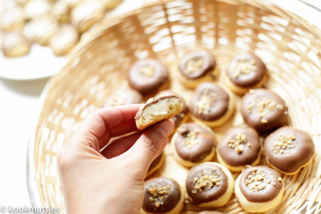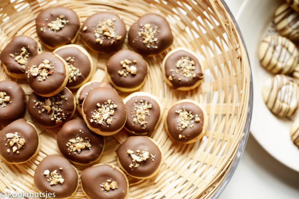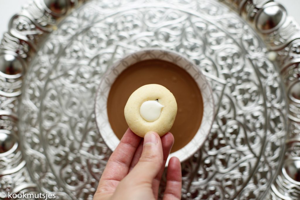 Dank je wel! Vind het ook erg leuk om te doen! De koekjes gaan de koelkast in zodat de witte vulling iets harder word. Als je dit niet doet en in de chocolade dept. Dan kan het wel zo zijn dat de witte vulling eruit valt.
