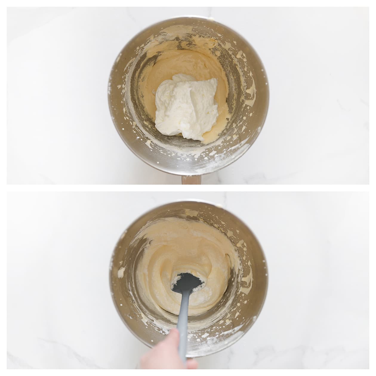 Spatel het beslag altijd voorzichtig, zodat je de luchtigheid behoudt en je biscuit mooi hoog en zacht blijft.