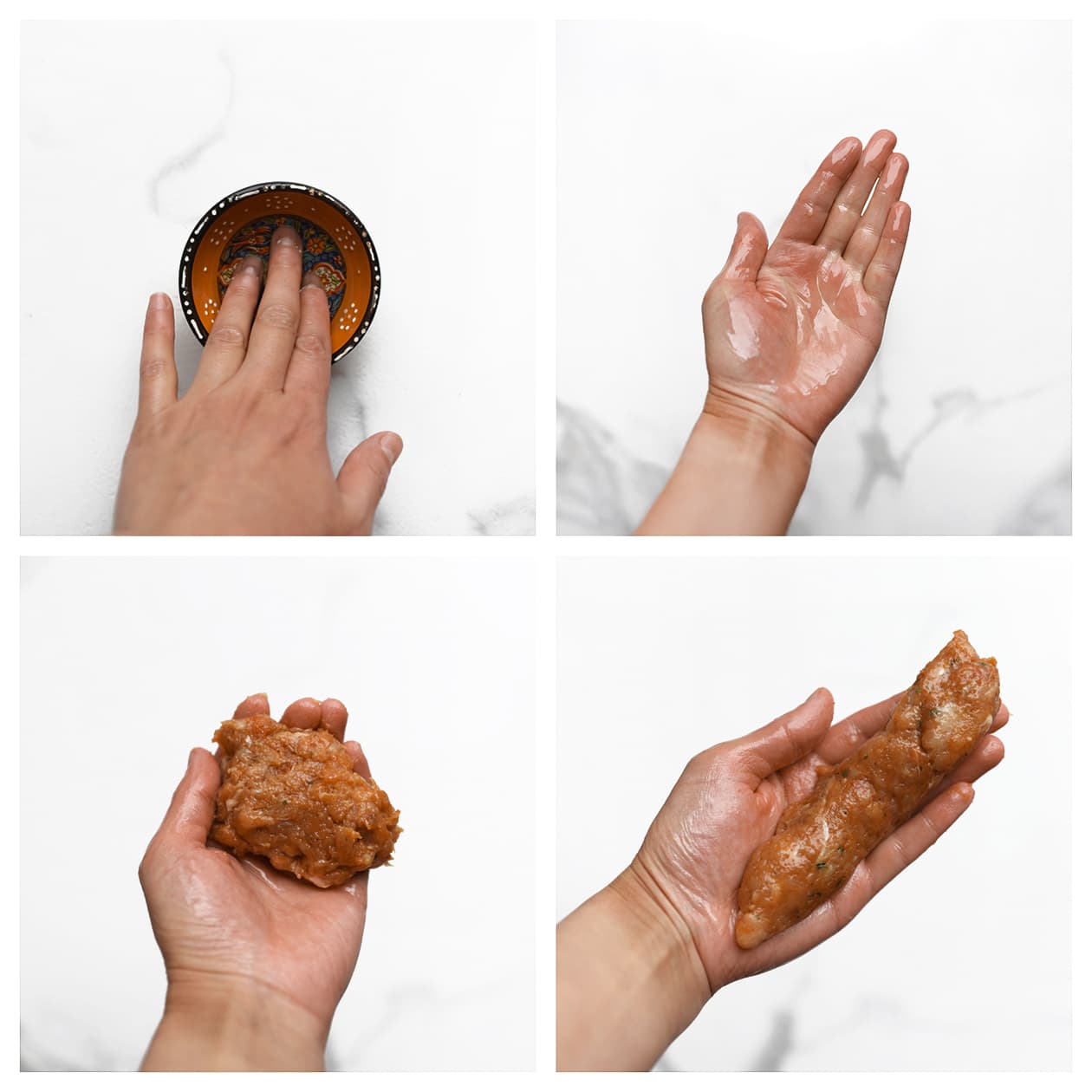 Hoe strakker je de frikandel in huishoudfolie rolt en draait, hoe mooier en gelijkmatiger de vorm.