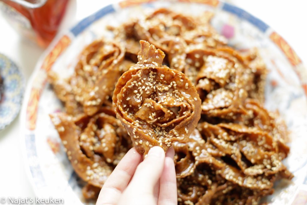Deze traditionele honingkoekjes zijn erg lekker en zeer geliefd. Jullie weten uiteraard al wat de vraag is die daarna volgt, “Najat? Mag ik het recept?”.