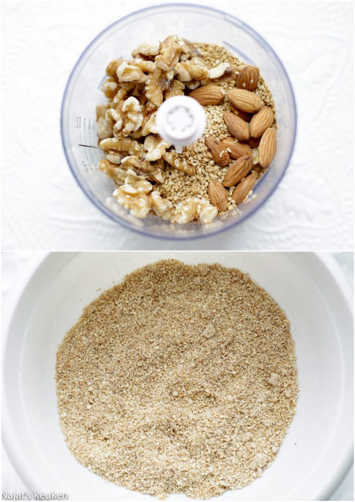 Salam Najat , hoe meng jij alles ? Met de hand of is met keukenrobot ook mogelijk? En doe je de amandelen met hun velletje mixen of haal je dit er eerst af? Alvast bedankt !!