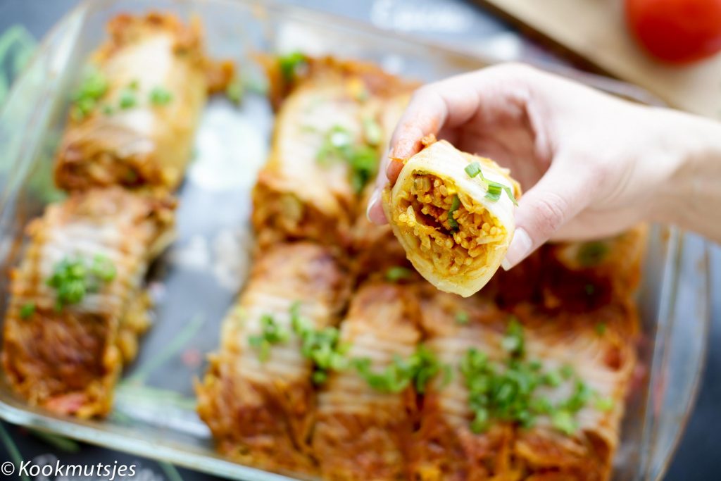 – Vul de koolrolletjes met groentes naar eigen keuze.
