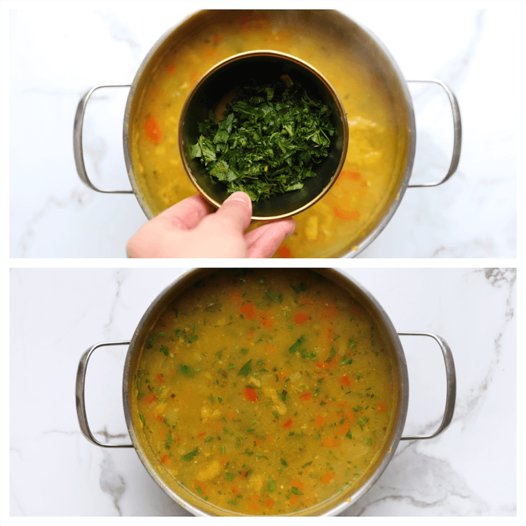 Voeg de gehakte peterselie pas op het laatste moment toe voor een frisse smaak. Peterselie behoudt zijn smaak beter wanneer het vers wordt toegevoegd.