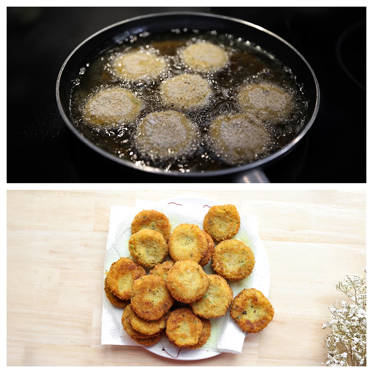 Verhit in een andere koekenpan een klein beetje zonnebloemolie op middelhoog vuur. Bak de maakouda in 2-3 minuten goudbruin.