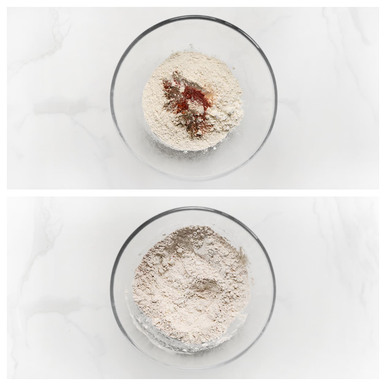 Meng de bloem, cayennepeper en het zout voor de bloemmix.