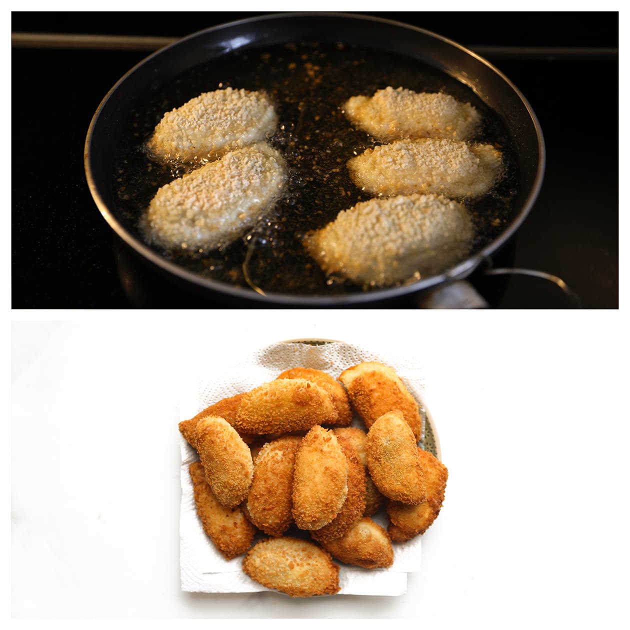 Bak de broodjes in kleine porties zodat de temperatuur van de olie stabiel blijft.