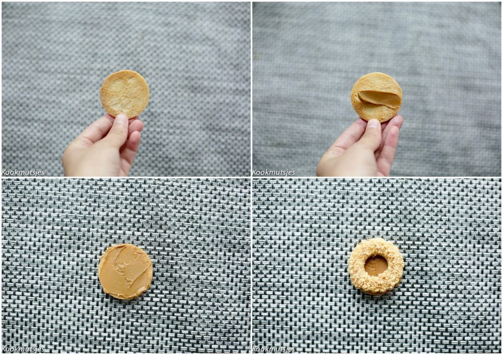 – Vul de koekjes met een vulling naar keuzen (witte chocoladepasta,