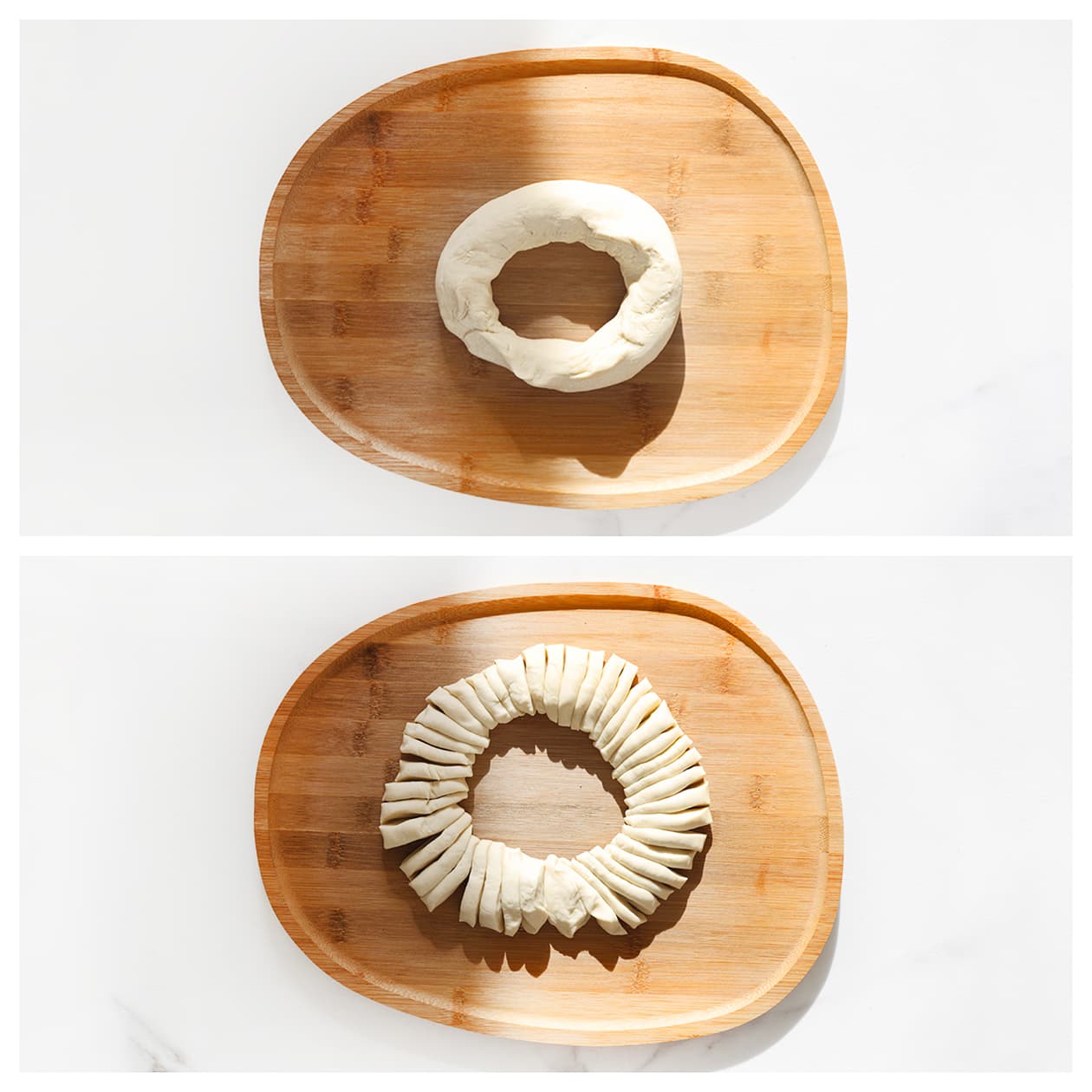 Laat het deeg echt goed rusten, want zo kan je het deeg veel makkelijker uitrollen zonder dat het steeds terugveert. Als het deeg tijdens het rollen toch terugtrekt, laat het dan nog 10 minuten rusten en probeer het daarna opnieuw.