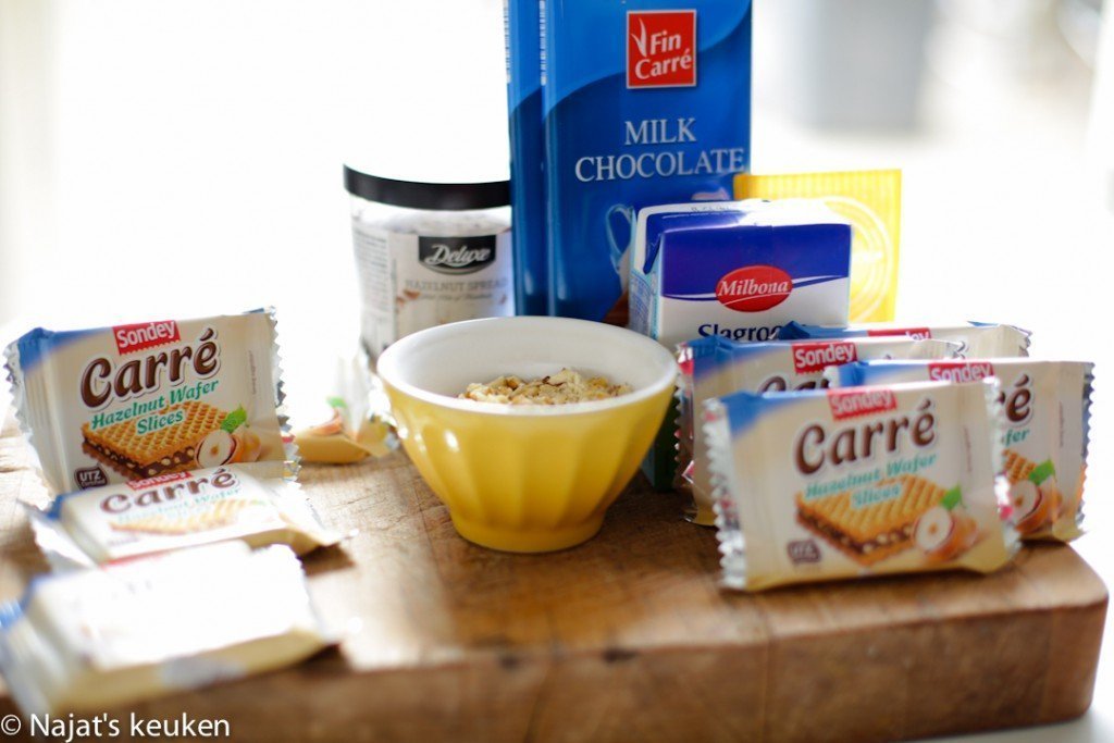 Allereerst tbarkellah 3alik! Bedankt voor al je ideeen. Ik wil graag deze taart maken alleen ik vroeg me af hoeveel gram een carré is en hoeveel stuks je hebt gebruikt. Ik heb namelijk die van Ah gekocht en er zitten 10 stuks in en ik tel 11 stuks bij je op de foto. Daarnaast heb je tips om er vierkante bonbons er van te maken? En ik dacht miss dompelen in chocolade denk je dat het lekker zal zijn? Zou ik bijvoorbeeld eerst in een vierkante brownie bakvorm het laten afkoelen en dan snijden in gewenste groote en dan dompelen in chocolade.