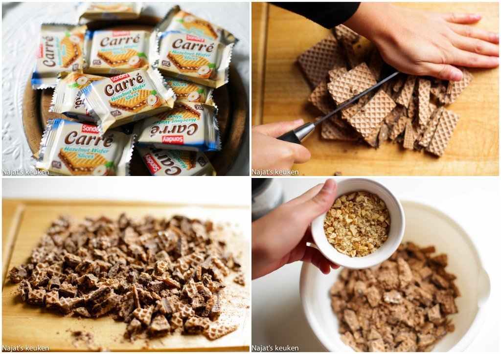 Ferrero Rocher, wie kent dat nou niet? Het gouden momentje oftewel het chocolaatje van smeuïge chocolade in een krokante huisje van stukjes hazelnoot. Het is echt waanzinnig lekker alleen is het meestal in een hap op… Daarom besloot ik om er een snelle no bake variant te maken zodat je er iets langer van kunt genieten!