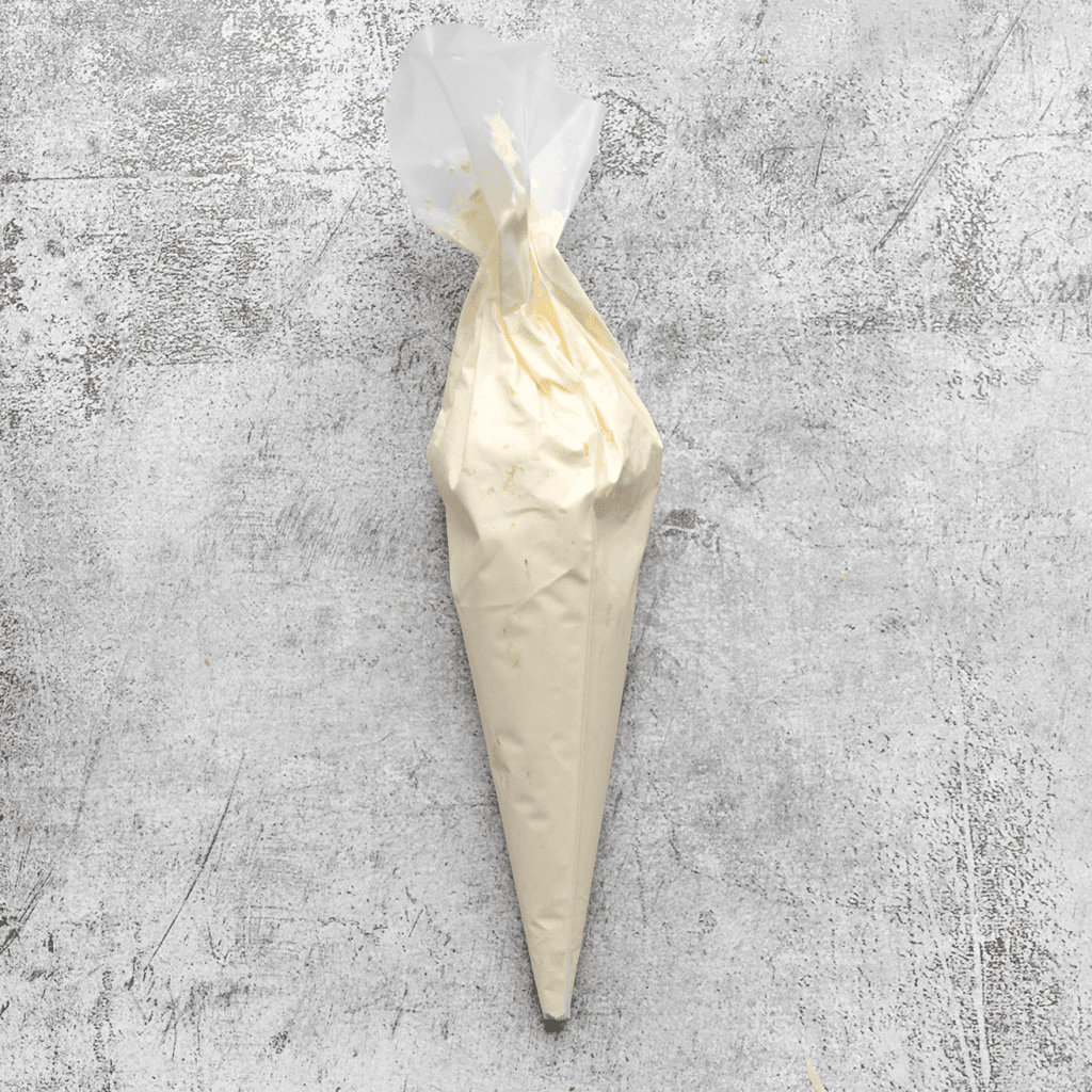 Gebruik een paletmes of spatel gedompeld in warm water om de roomlaag glad te maken.