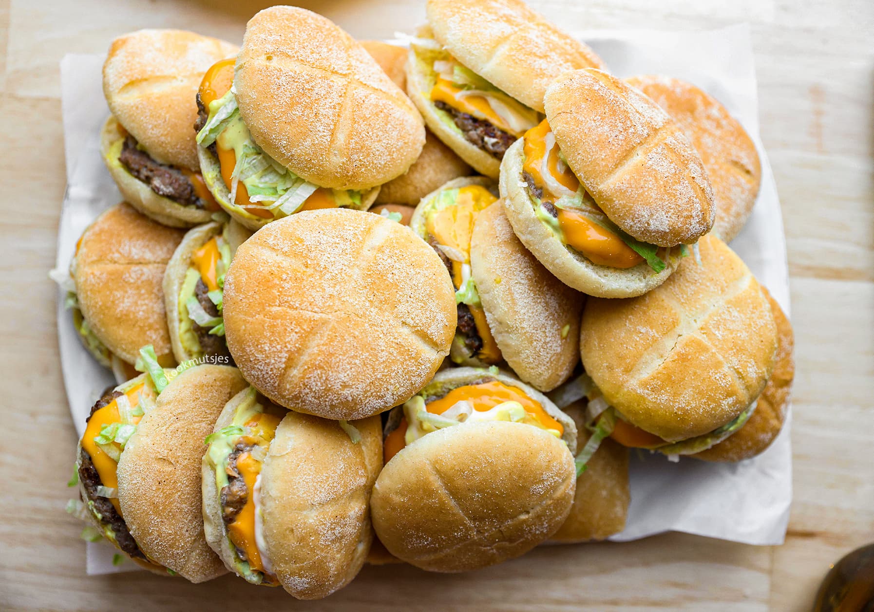 Je kunt de broodjes en burgers ook vooraf maken en vlak voor het serveren alleen nog even opwarmen.