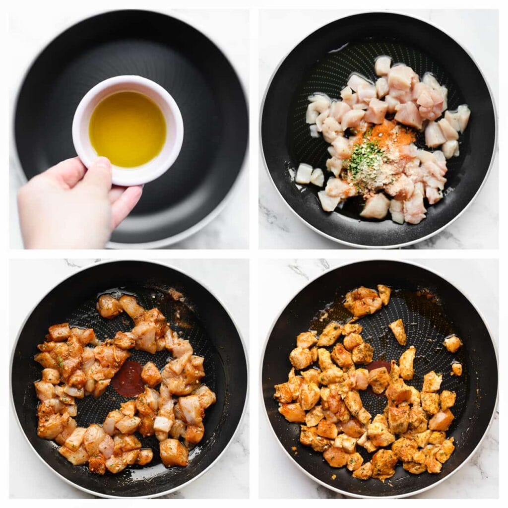 Vervang je de kippendijen door kipfilet? Let op dat je de kip niet te lang bakt om uitdroging te voorkomen. Kippendijen hebben van nature meer smaak en blijven sappiger dan kipfilet.