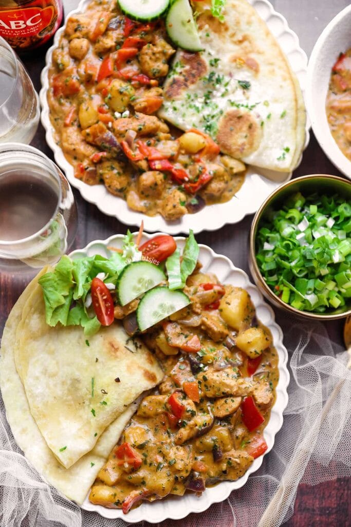 Serveer het gerecht bijvoorbeeld met rijst, couscous of vers brood om de saus goed op te kunnen nemen.
