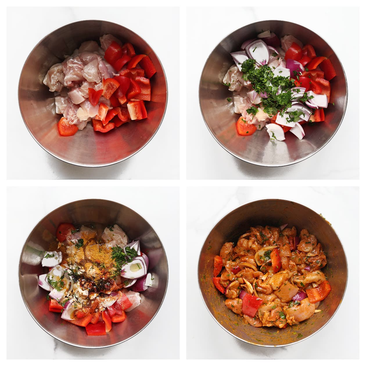 Laat het kipmengsel, als je tijd hebt, 15-30 minuten marineren voor extra smaak (langer mag ook).