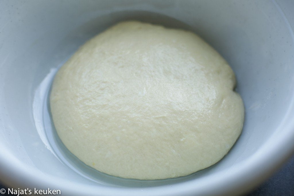 Hallo Medina, ik kneed de olie rustig met het deeg en laat het dan rijzen.