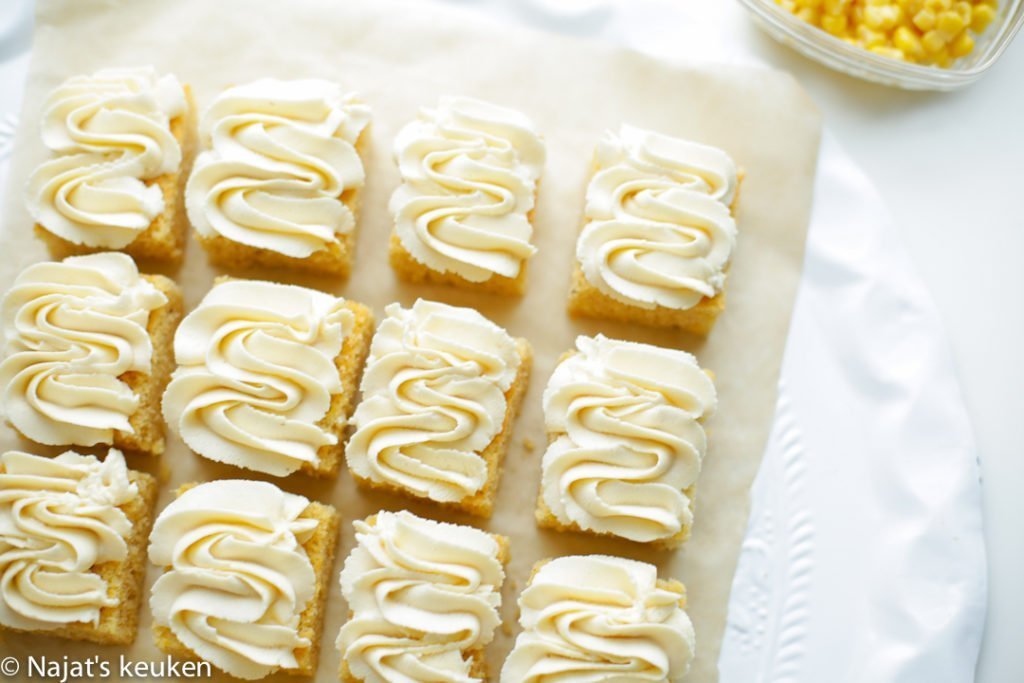 Over smaken valt niet te twisten maar er is gelukkig wel veel te kiezen! Dat geldt ook voor popcorn, het is in zoveel smaken verkrijgbaar dat er genoeg keuze is. Zelf ben ik gek op caramel en salty maar door het maken van deze cake raakte ik geïnspireerd door de popcorn caramel. Je ziet het misschien niet maar deze cake bevat gewoon mais! De smaakcombinatie is echt wauw, hoe gek het ook klinkt! Het is zo zacht, smeuïg en heeft veel weg van een notensmaak. Een romige karamel topping mag hierbij niet ontbreken! Ik ben benieuwd wat jullie ervan gaan vinden! Als je het hebt gemaakt, vergeet dan niet om een foto te maken. Altijd leuk om te zien!