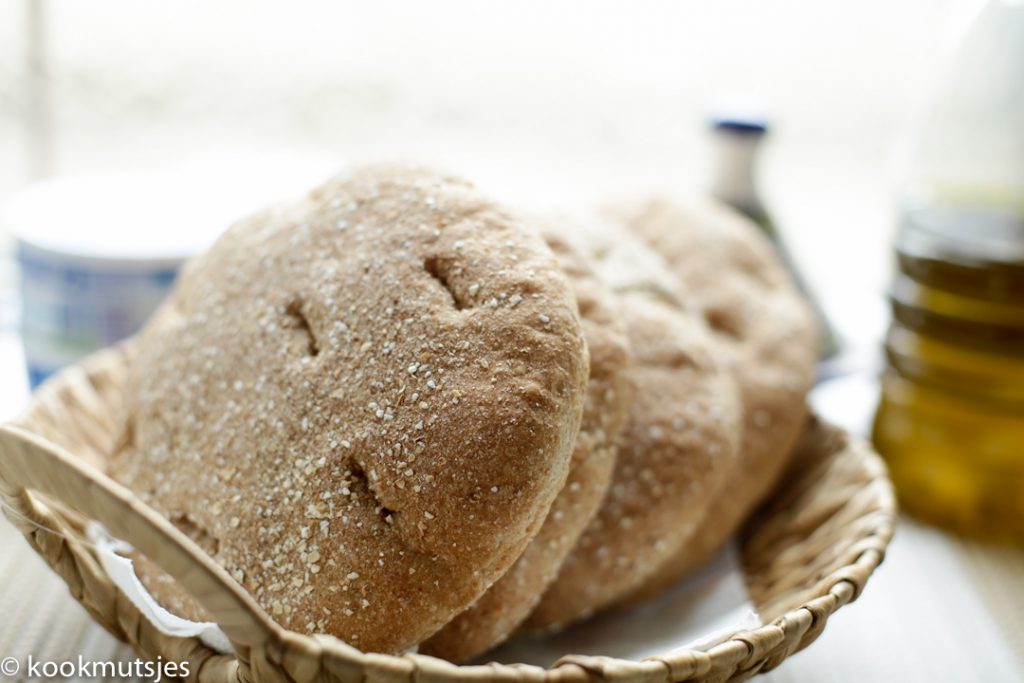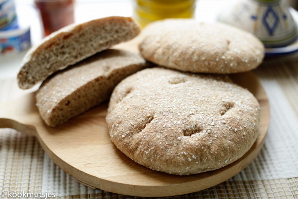 De formaat van de Marokkaans brood uit de oven heb ik niet al te groot gemaakt. Dit kun je makkelijk door twee snijden en vullen met wat jij maar lekker vindt.