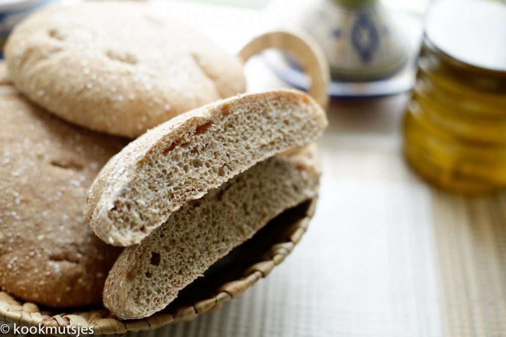 Marokkaanse maaltijden zijn onvolledig zonder een stevig stuk brood ernaast en kan zich makkelijk als een van de belangrijkste voedingsmiddelen noemen. Er is geen verkeerde moment om brood te eten, want het kan worden gegeten bij het ontbijt, lunch/brunch en hoofdgerecht maar ook weer als tussendoortje gedurende de dag. Brood vervangt over het algemeen het bestek in de Marokkaanse keuken en werkt als lepel, vork en zelfs als mes. Marokkaans brood uit de oven wordt voornamelijk gebruikt om gerechten zoals marmita, tajine en andere voedsel mee op te scheppen, maar het is natuurlijk ook erg lekker als sandwich! Vooral wanneer de Marokkaans brood net uit de oven komt (natuurlijk wel een klein beetje laten afkoelen), open snijdt, wat (room)boter op smeert en afmaakt met kaas! Oh ja, en een kopje muntthee erbij, dat is zo lekker en ik weet zeker dat ik niet voor mezelf praat als ik dat zeg.