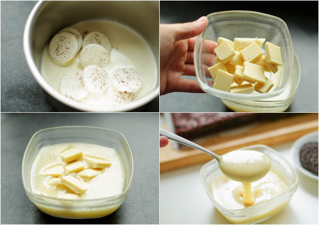 Ik heb het gemaakt, het is een beetje te vloeibaar. Maar ik heb de slagroom niet gemeten, gewoon een beetje in de steelpannetje.