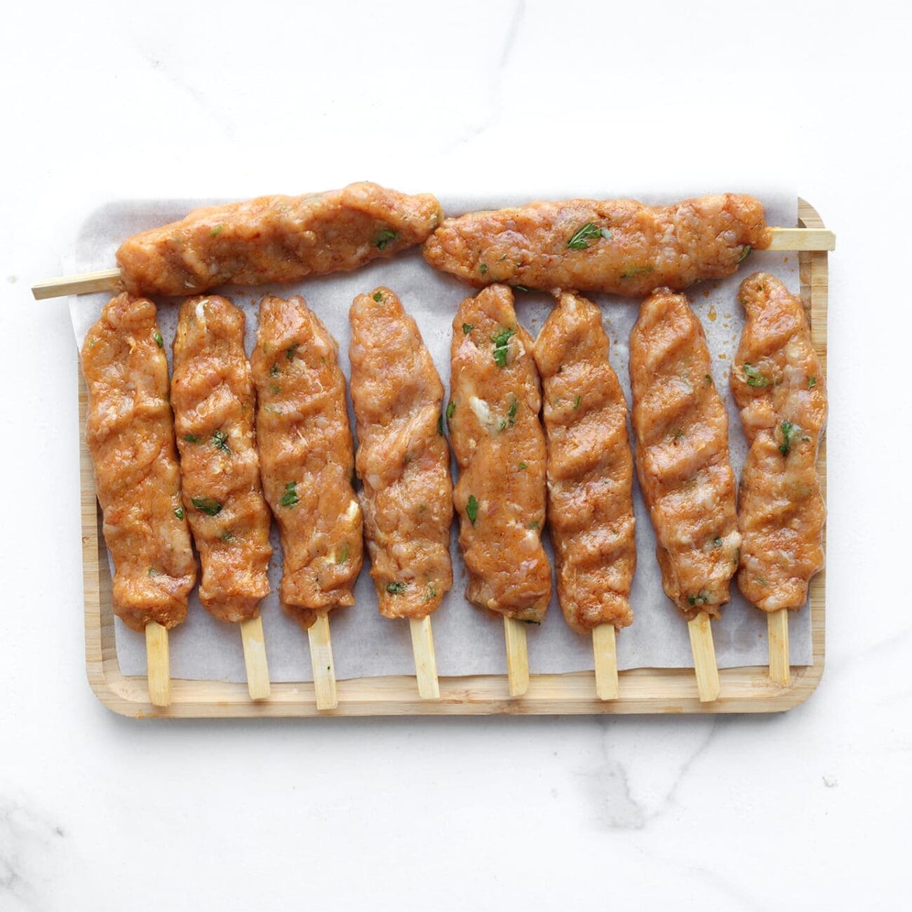 Laat het kipmengsel 15 minuten rusten (indien tijd) zodat de kruiden beter intrekken. Het liefst een nachtje.