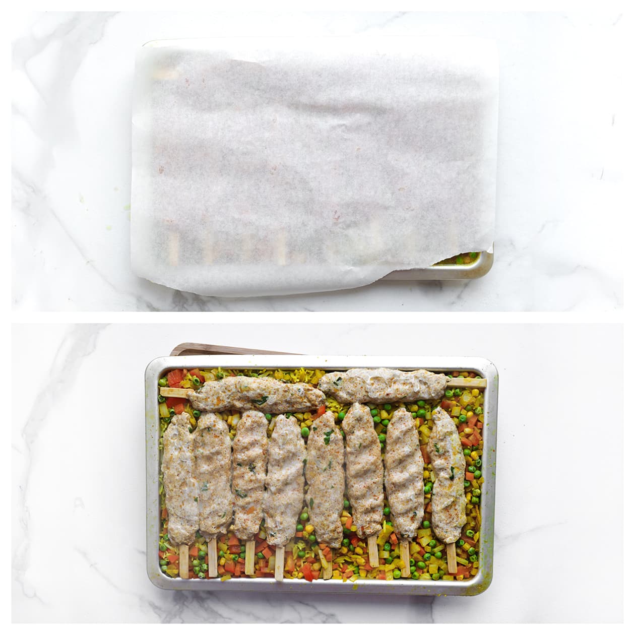 Maak deze makkelijke ovenschotel met malse kipspiesjes en gekruide, smaakvolle rijst! Alles wordt samen gebakken in de oven en vormt een complete, gezinsvriendelijke maaltijd boordevol smaak. Ideaal!