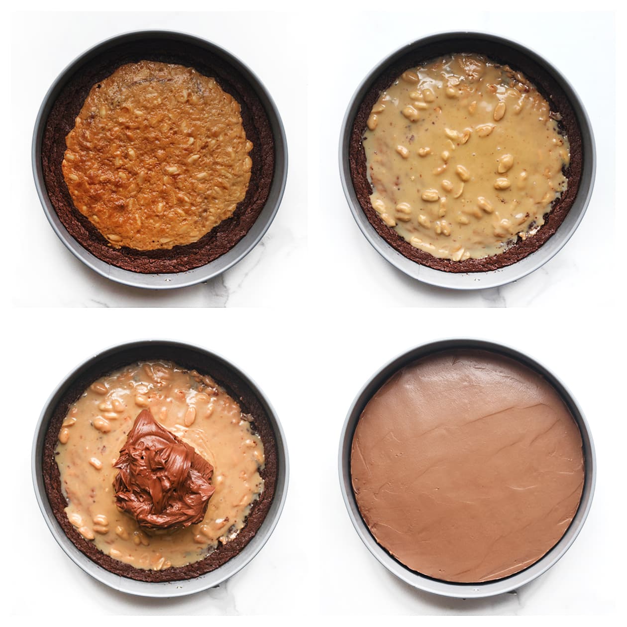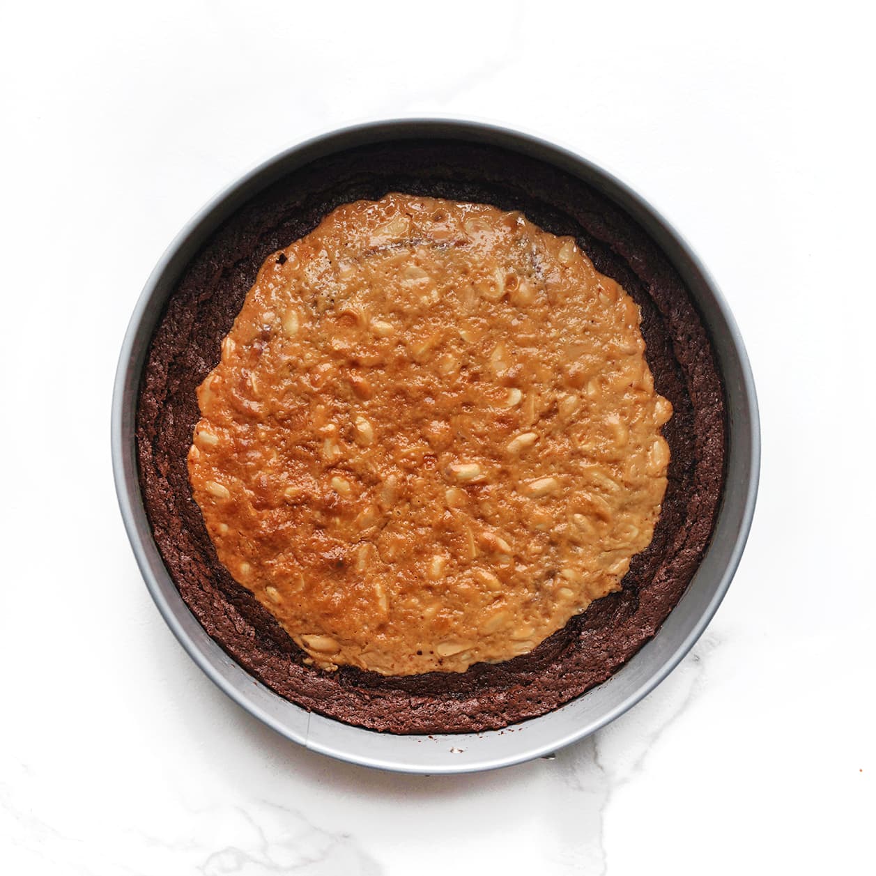Pinda-Karamel Brownie Taart met Hazelnootroom