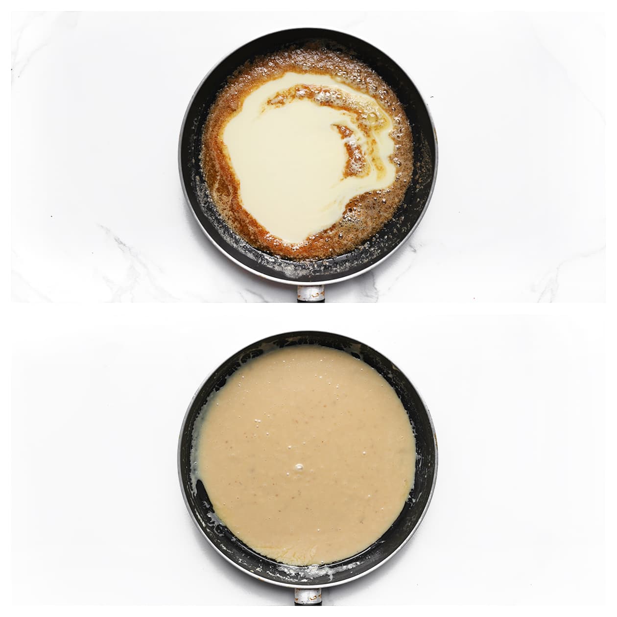 Blijf continu roeren bij het maken van de karamel, want het mengsel kan snel aanbranden door de gecondenseerde melk.