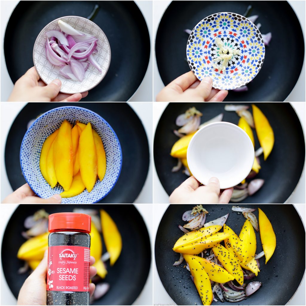 Bij de mango zie ik op de foto dat je er sesamzaad op hebt gestrooid maar dit staat niet in de beschrijving (recept). Kun je me uitleggen of dat wel of niet moet?