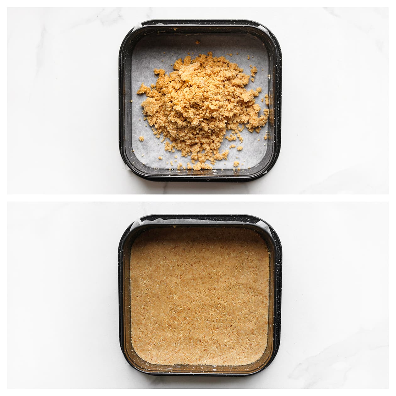 Druk de bodem extra stevig aan, vooral langs de randen. Zo voorkom je dat hij kruimelt bij het snijden.