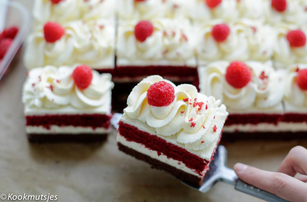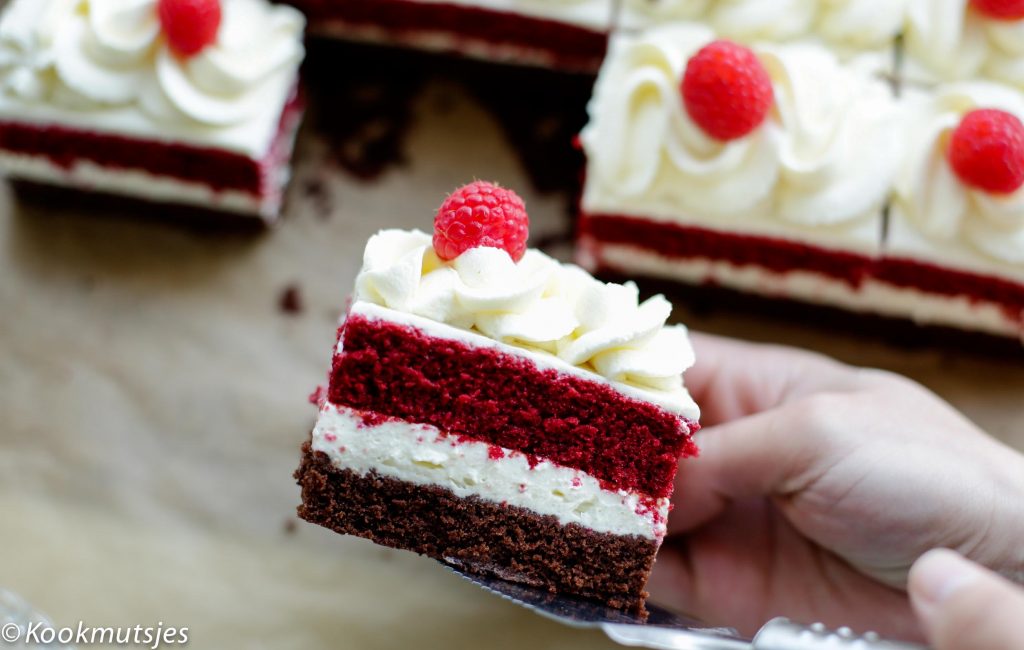 Is het een red velvet cake? Is het een chocolade cake? Het is een Red velvet chocolade cake! You get the best of both world with this one. Het is een fluweelzachte, luchtige en donkere cake en dat proef je! De uitgesproken smaak van chocolade naast de welbekende red velvet is een top combinatie en raad het je zeker aan om te gaan maken.