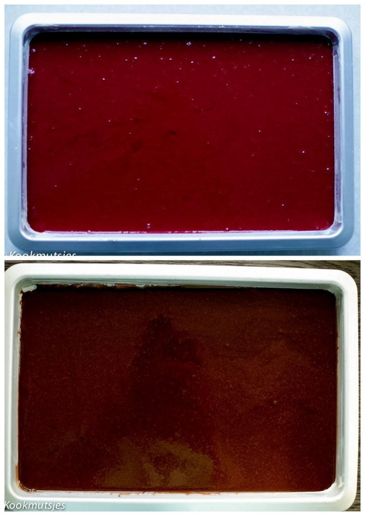 Mmmm dat ziet er lekker uit zeg. Wil het ook maken maar dan in een rondje bakvorm, moet ik dan het zelfde hoeveelheid aanhouden en de cholade cake en revlet cake opart bakken aangezien ik geen 2 rondje bakvorm heb??