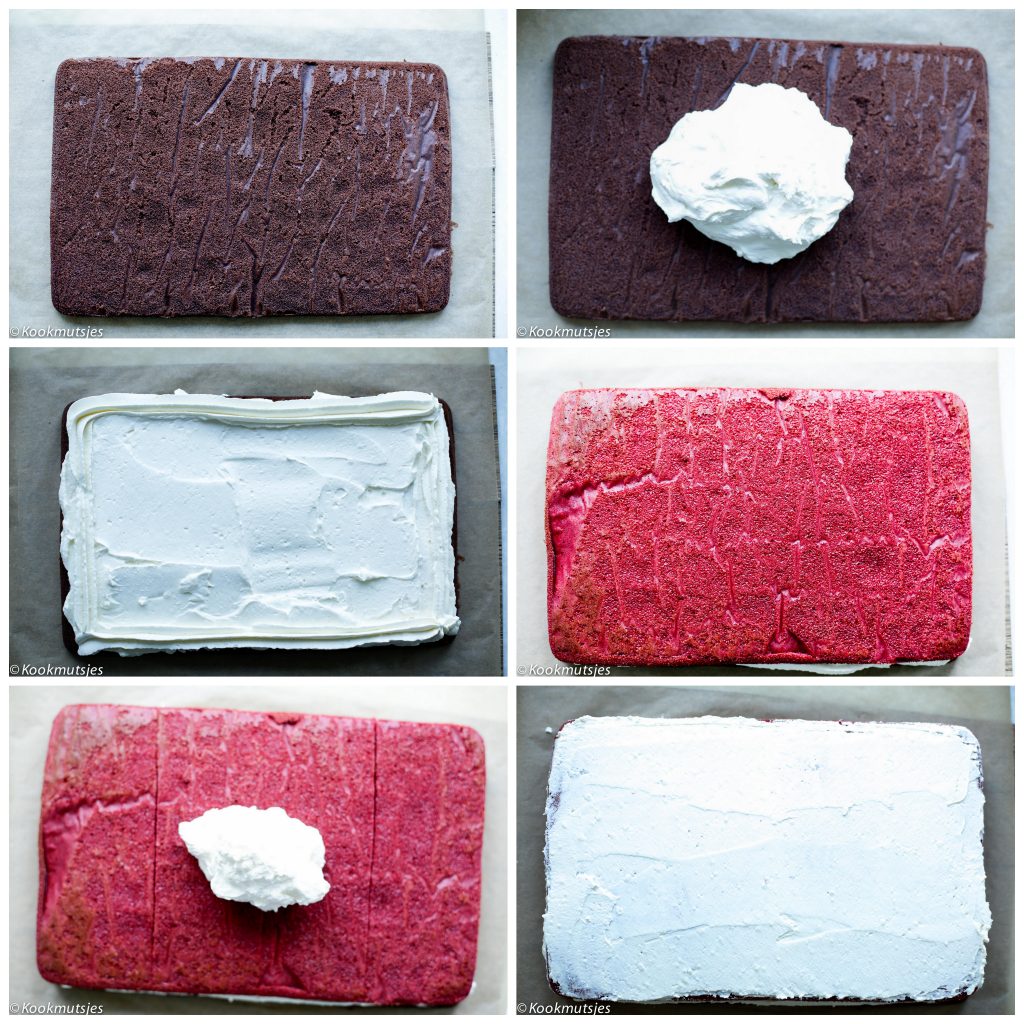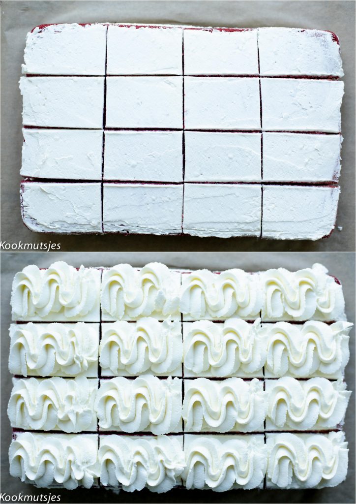 Een cake die gelaagd en ingesmeerd is met een roomkaas-slagroom topping maakt het altijd extra bijzonder. Dit is echt extra lekker en het maakt de cake meteen ook smeuïger. Ik houd van room op mijn cake en moet toegeven dat ik heel veel red velvet cakes heb gemaakt. De red velvet cake heeft van zichzelf een zachte chocolade smaak en nu het wordt verrijkt met een laag chocolade cake nog meer! Dus houd je van de mooie rode contrast, room en chocolade? Dan weet je wat jou te doen staat.