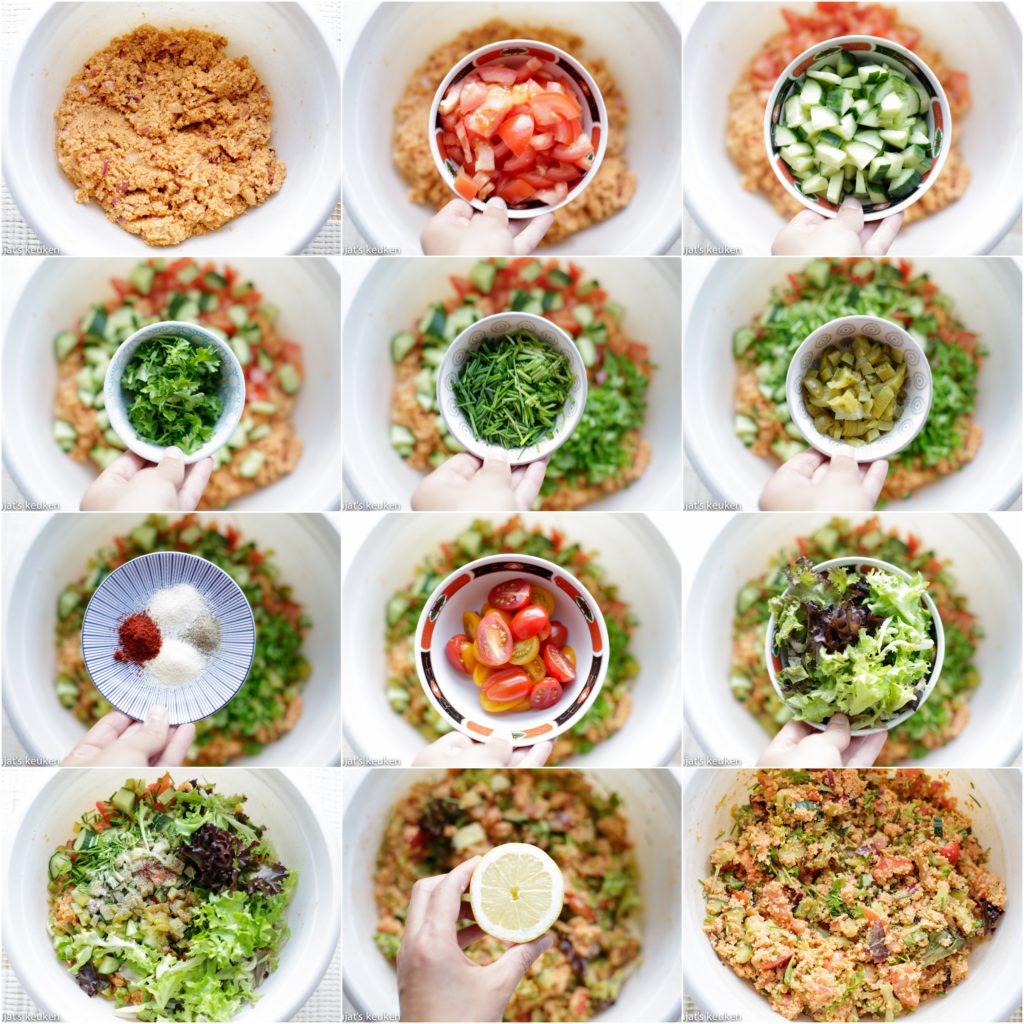 Als je het pittig wilt make is het lekker met peper puree ipv tomaten puree. Biber salca te koop bij de turkse winkel. Of een mix van beide zoals kisir bijv wordt gemaakt