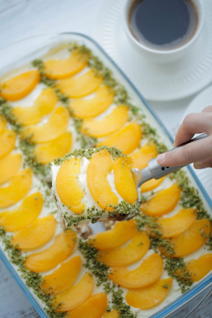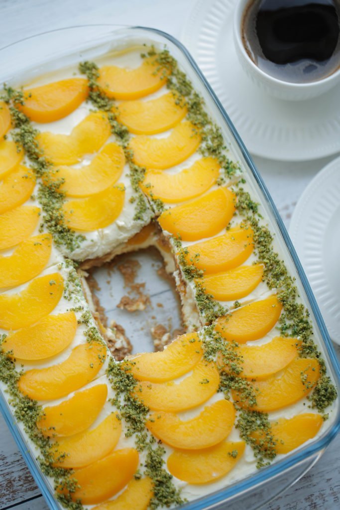 Het hoogtepunt van een geslaagd diner: dessert! Een heerlijke verwennerij die absoluut niet mag ontbreken op tafel! En het lekkerste toetje maak je natuurlijk helemaal zelf met de meest simpele ingrediënten. Deze romige perzik dessert is vol van smaak, makkelijk en erg lekker! Aanrader!