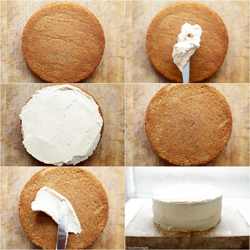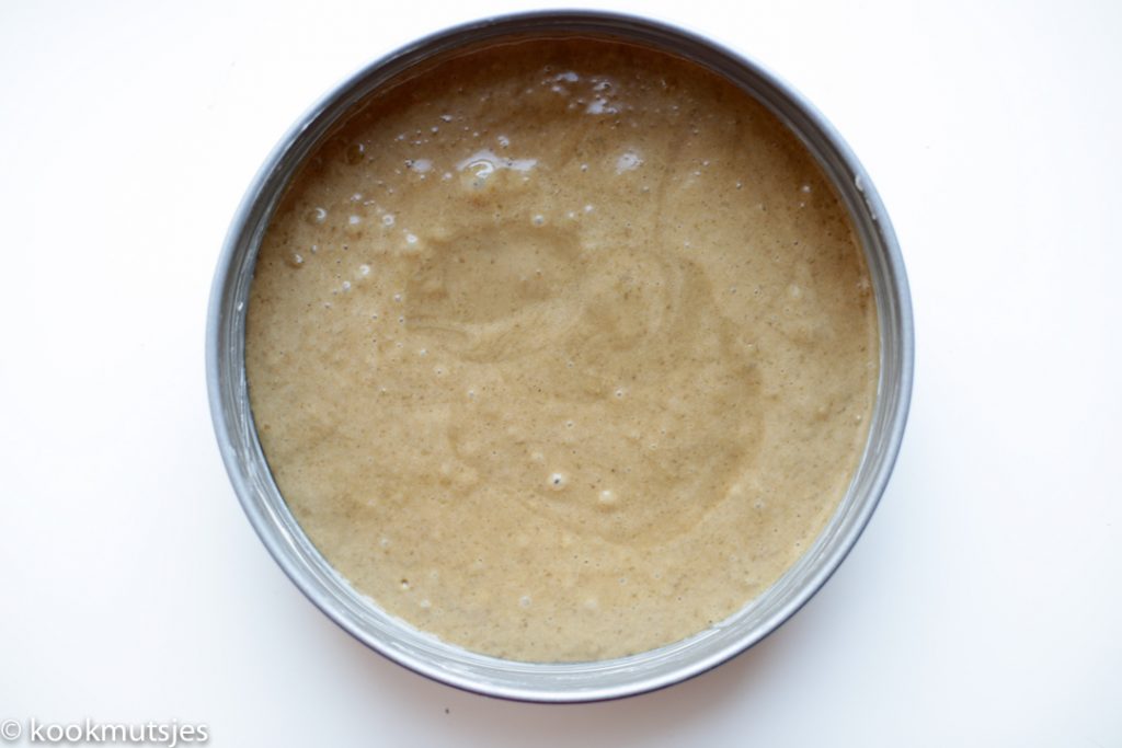 Bakblik die ik heb gebruikt is 23 cm en tussen de lagen heb ik wat walnoten en speculaas kruimels erbij gedaan.