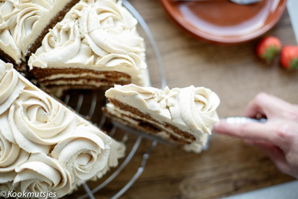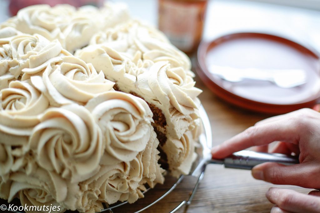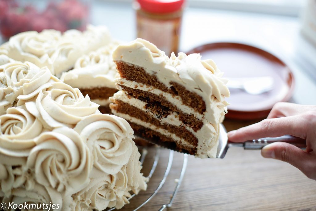 Mijn absolute favoriete cake structuur is een cake die gemaakt is op basis van olie. Het houdt de smaak lekker neutraal zodat je de smaak van speculaas nog beter proeft en de cake blijft nog langer houdbaar. De frosting bestaat weer uit een heerlijke mix van slagroom, roomkaas, speculoos en met een vleugje vanille. Mega lekker want ik bleef ik maar van eten hihi (Dek het dus meteen af en leg het weg, je bent gewaarschuwd!). De zachte cake in combinatie met de zijdezachte room is te lekker!