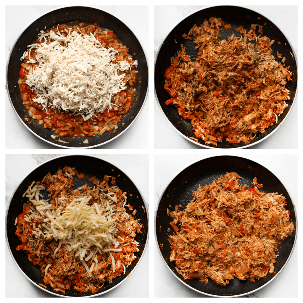 Vervang de geraspte kaas met verschillende soorten kaas, zoals cheddar, mozzarella of een Mexicaanse kaasmix, om de smaak van de vulling te variëren.