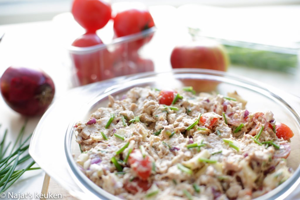 Regelmatig houd ik wel van een heerlijke salade voor op brood en dan vooral iets met tonijn. Het hangt natuurlijk van je voorkeur af maar het liefst eet ik het broodje op wanneer de tonijnsalade een beetje koud is. Vind het heerlijk wanneer het lekker fris is samen met de groentes. Mayonaise mag van mij echt niet ontbreken want dit is echt de smaakmaker. Het geeft zo’n fijn/romig textuur en het bindt alles mooi samen. En om het af te maken een beetje zout en peper naar smaak en je hebt een heerlijke tonijnsalade getoverd met een lichte, knapperige smaak (yummm)! Deze tonijnsalade is zo makkelijk te maken, vult goed en voor je het weet staat het al op tafel.