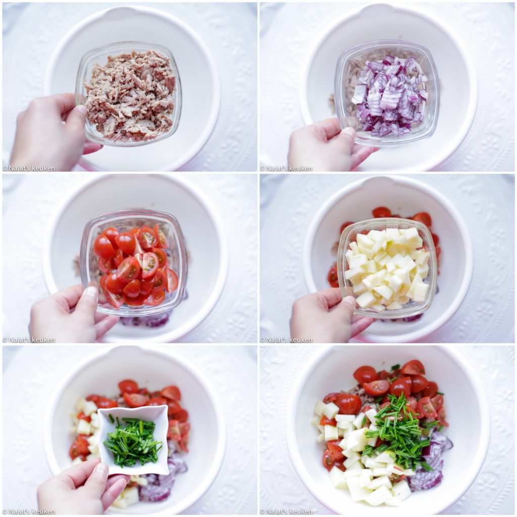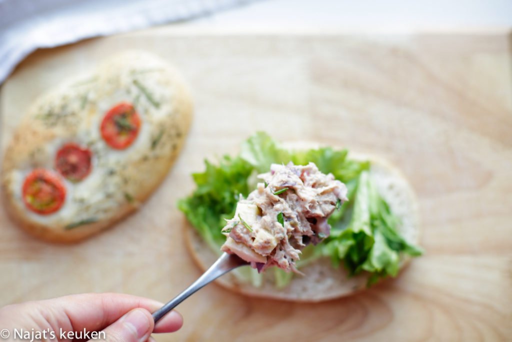 – Wil je er een gezonde tonijnsalade van maken dan kun je mayonaise weg laten.