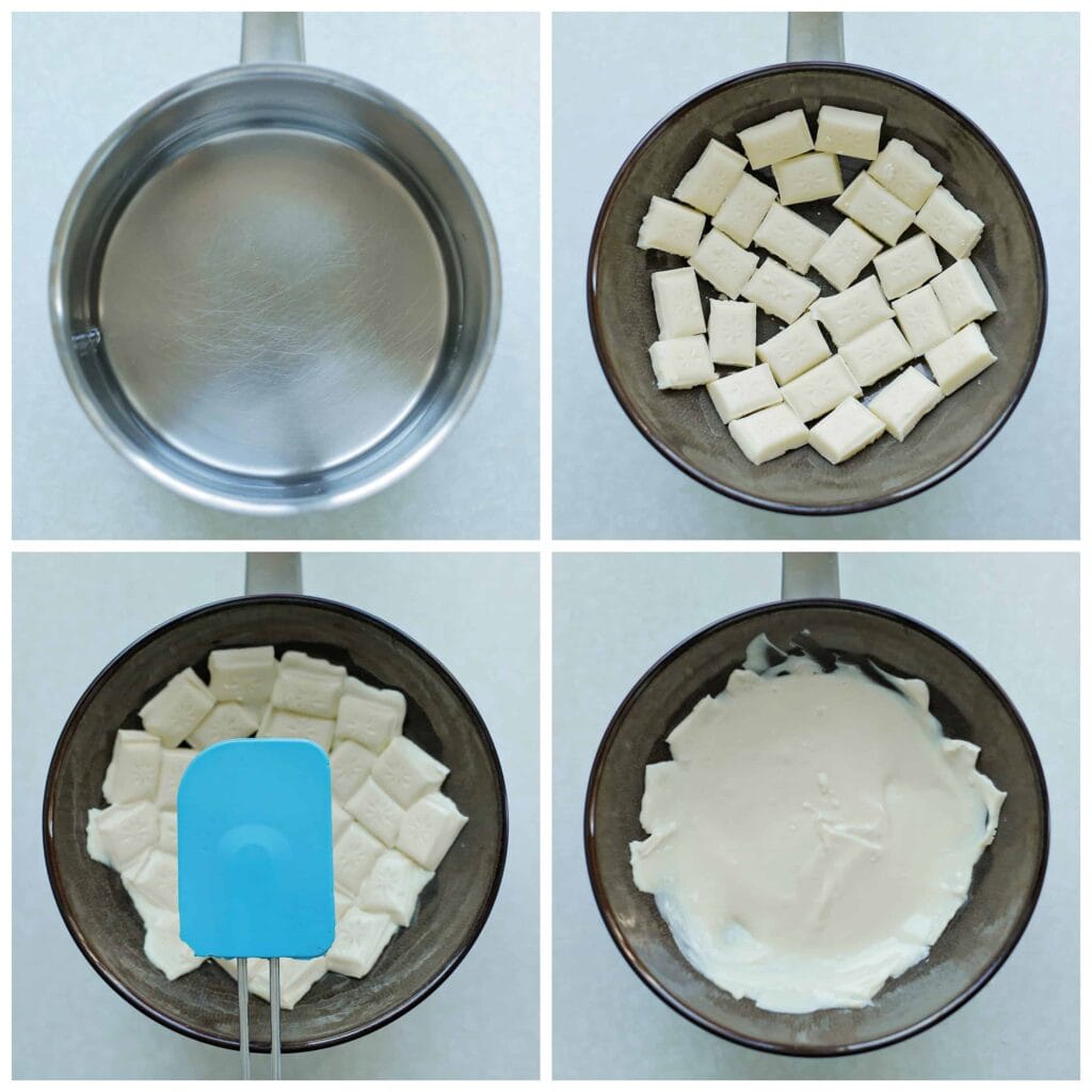 Vermijd vocht in de gesmolten chocolade (au bain marie), omdat dit kan resulteren in een korrelige textuur.