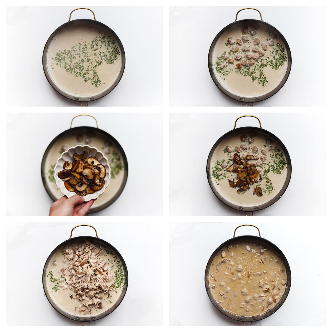 Bij dit recept gebruik je kippendijen voor een malse bite, rundergehaktballetjes voor extra stevigheid en verse champignons voor die diepe aardse smaak die het gerecht zo typisch maakt.