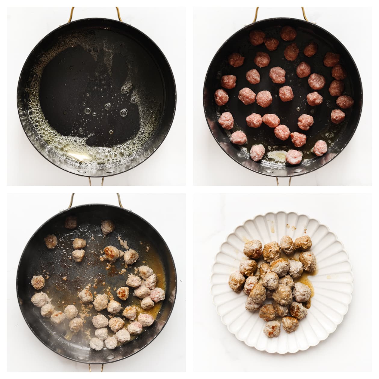 Bak de gehaktballetjes eerst rondom goudbruin voordat je ze aan de saus toevoegt, zo blijven ze stevig en geven ze extra smaak.