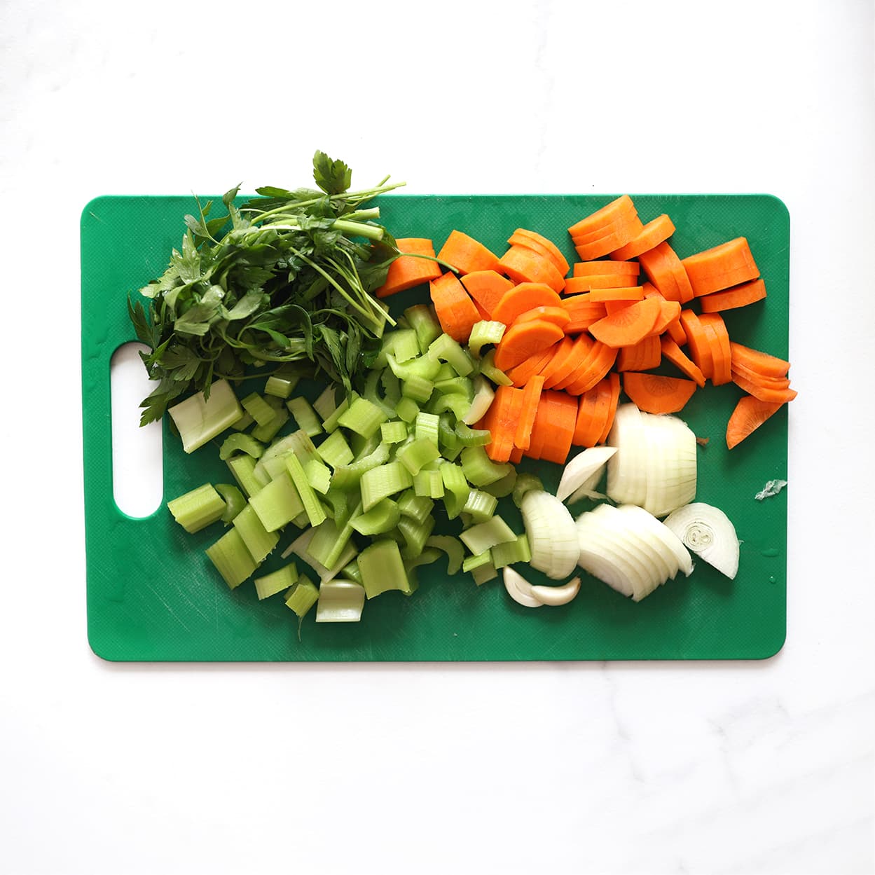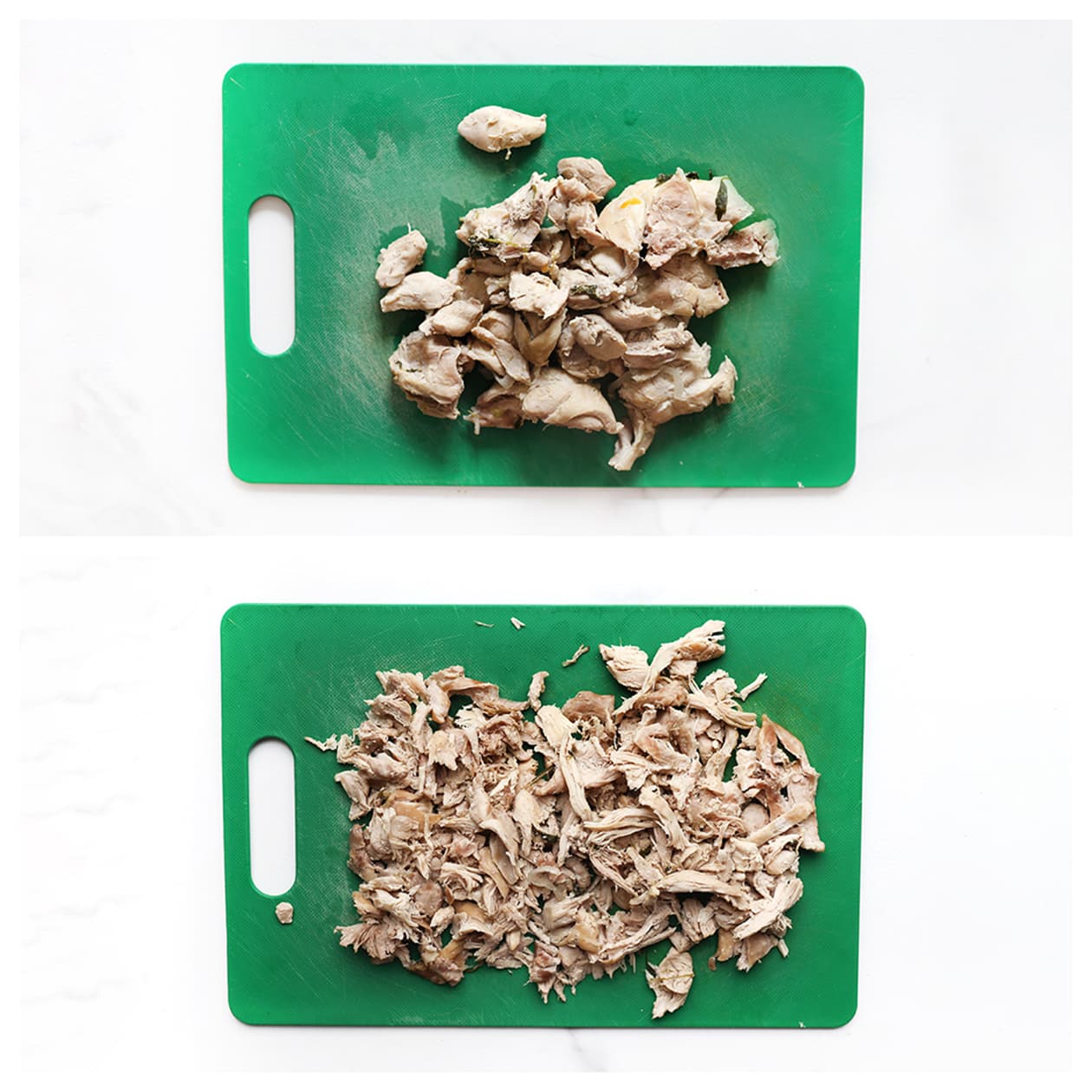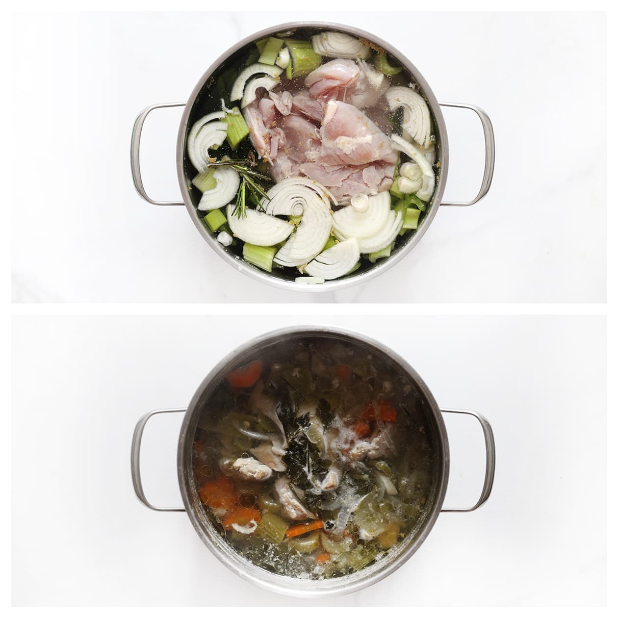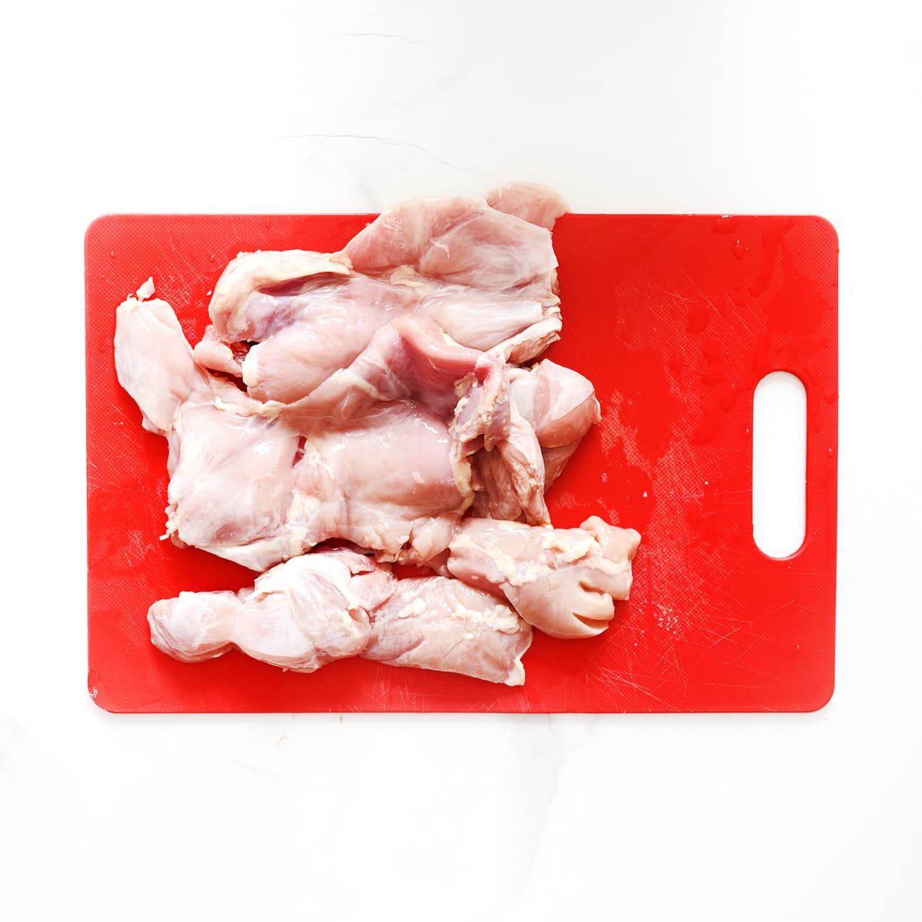 Gebruik bij voorkeur kippendijen in plaats van kipfilet, omdat deze malser blijven en meer smaak afgeven aan de bouillon en ragout.