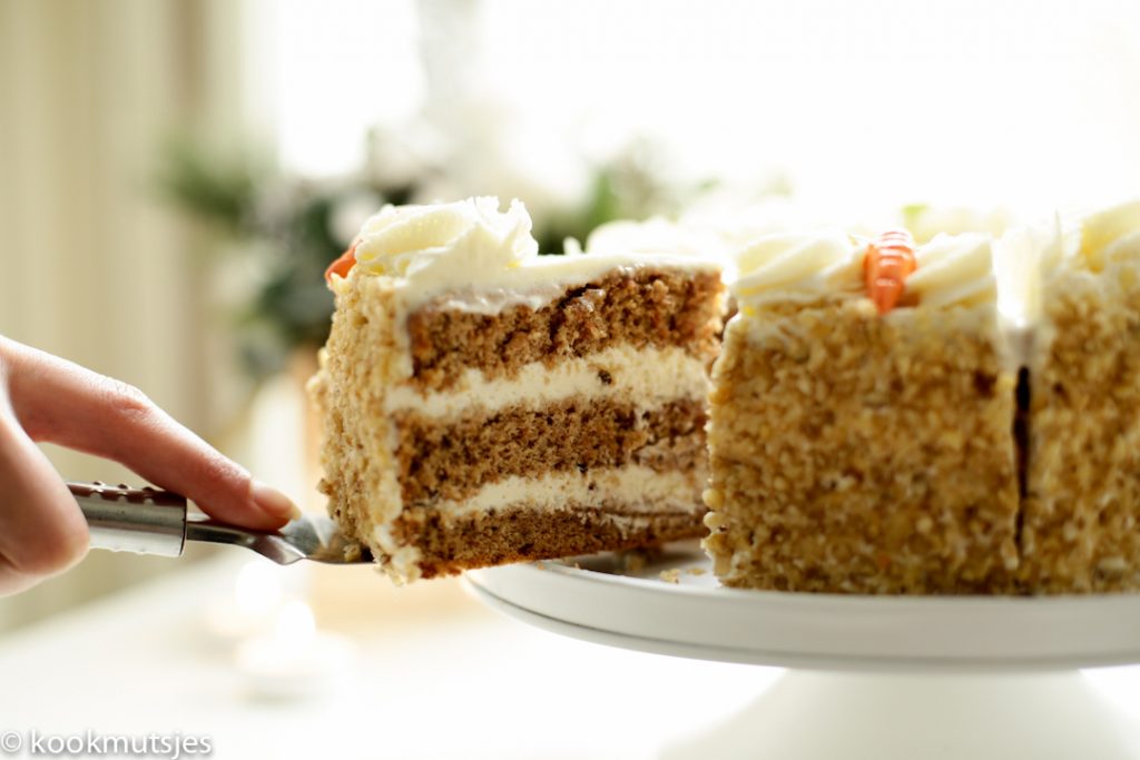 Wij houden ervan om het hele jaar door taart te eten en aangezien wortels makkelijk verkrijgbaar zijn, was de keuze al snel gemaakt. Yup, worteltaart! Daarnaast zijn wortels natuurlijk ook voedzaam en moeiteloos te bereiden, dus waarom niet? Ik besloot de taart lekker hoog te maken om het nog meer op te laten vallen. En ja hoor, dat was meteen gelukt met zo’n verschijning.