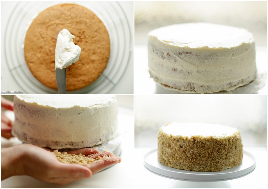 Salaam moealaikoum Siham. Ik weet niet of je de vraag aan mij had gesteld, maar ik reageer gewoon haha. Ik had mijn taart afgesmeerd op bakpapier en daarna op een kartonnetje gelegd (gekocht bij zo een bakwinkeltje). Vervolgens heb ik de taart opgetild en vastgehouden met mijn linkerhand. Met je rechterhand ‘plak’ je de gemalen walnoten aan de taart. De restjes van de walnoten vallen dan in het bord met gemalen walnoten. Ondertussen draai je de cake steeds voorzichtig totdat alles is gevuld met walnoten. Daarna heb ik de cake pas op een taartplateau gelegd. Hoop dat je me begrijpt!