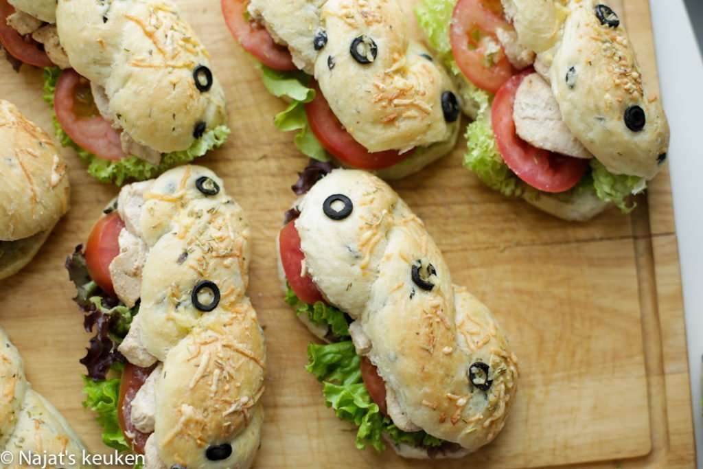 – Beleg de broodjes naar eigen keus.